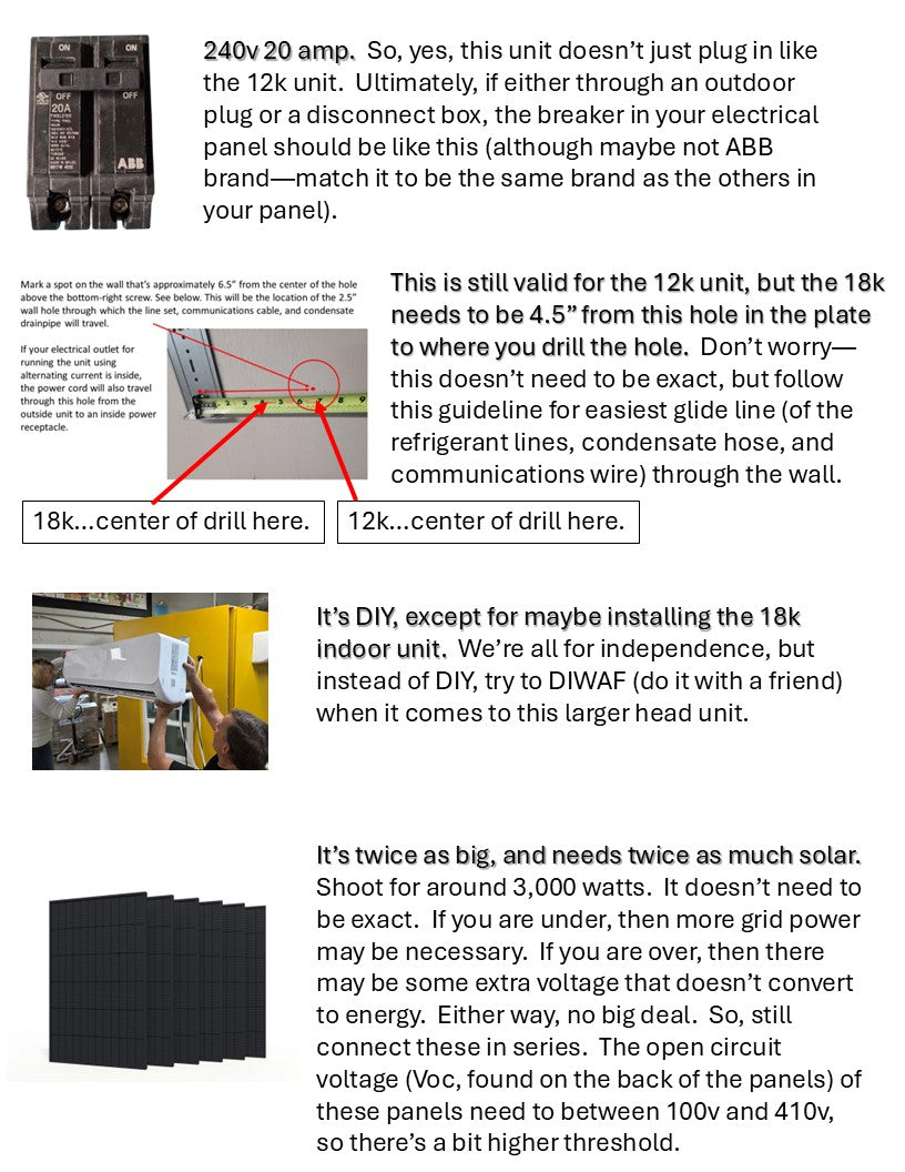 - 110 -120v power for 12k BTU units (which can plug into a normal wall outlet)