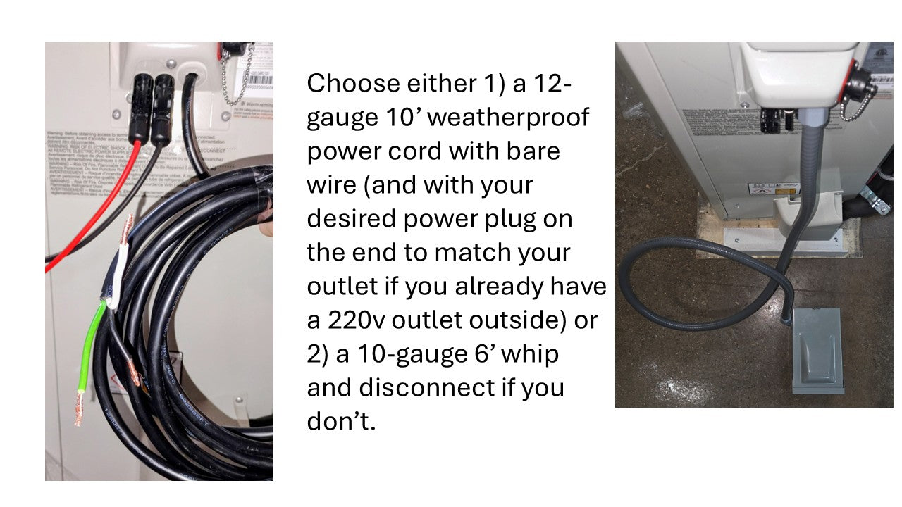 - 220/240v 20-amp (12 AWG) power cord with or without a plug--specify your needs at the time of order