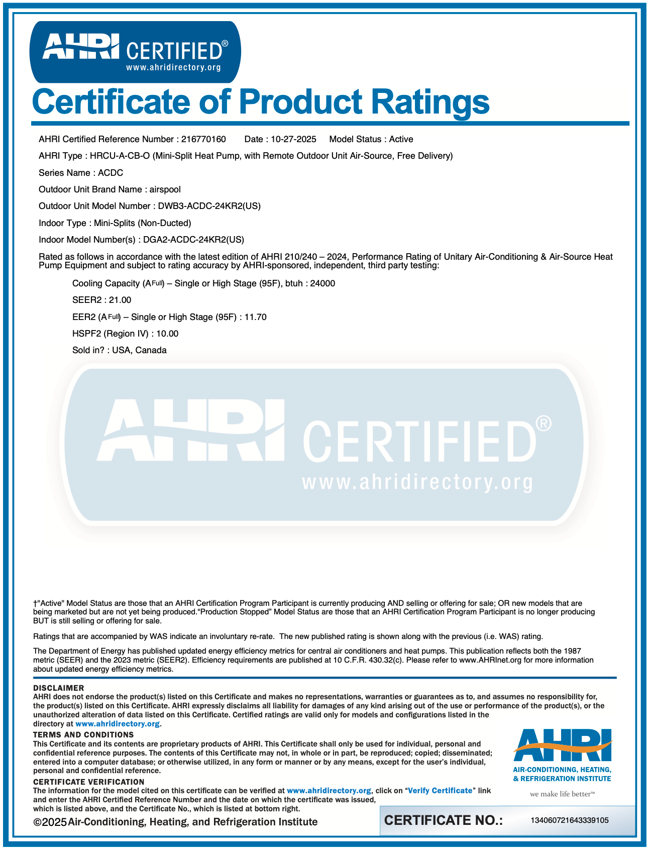 Airspool MS24 is a super-efficient air conditioner (21 SEER2)/heat pump (9.6 HSPF2) DC mini split that allows you to get free air conditioning or heating once you directly connect snap-on solar panels (90 -380v, with a recommended 3,300 watts). Get cooling up to 134 Fahrenheit outside temperature and heating down to 5 degrees Fahrenheit outside temperature. Airspool doesn't need batteries or external voltage controllers like past units to run solar. Instead, since the system's variable-speed motors are all DC, the same as the solar panels, no conversion is necessary. Cloudy or nighttime? No problem. Connect to standard 220-240 power, either 60 Hz, or even 50 Hz for overseas. Control from anywhere to change modes and temperatures, schedule on and off times, and see your electrical savings with the Airspool app. By making high-efficiency on-grid and free solar/off-grid air conditioning easy, we're working to make Airspool the best solar-powered air conditioner. And the best part? Now, this larger unit uses our patent-pending Quick 'n' Easy (TM) connection method. No vacuum pumps needed! No gauges needed! No wiring needed! We even pre-wire the power cord. The only tool you'll need as a drill. We even provide you with the drill bits, Phillips head, and holes saw. Check this out to see how it works. It'll save you around 7 hours. Save the environment and save money with Airspool. #hybridsolarairconditioner